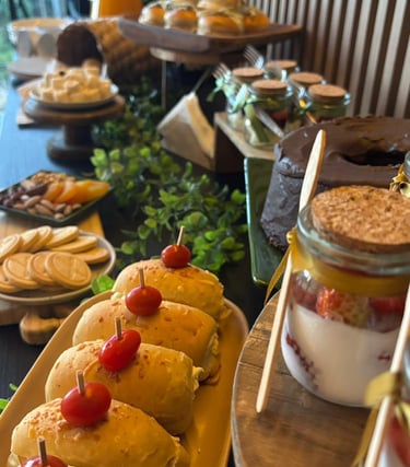 Pequenos encontros que merecem grandes memórias. Aqui, cada mesa posta é desenhada com o coração: a decoração conversa com o tema, os sabores despertam sensações, e o afeto está em cada cantinho. A gente cuida de tudo pra que você só precise se preocupar em curtir.